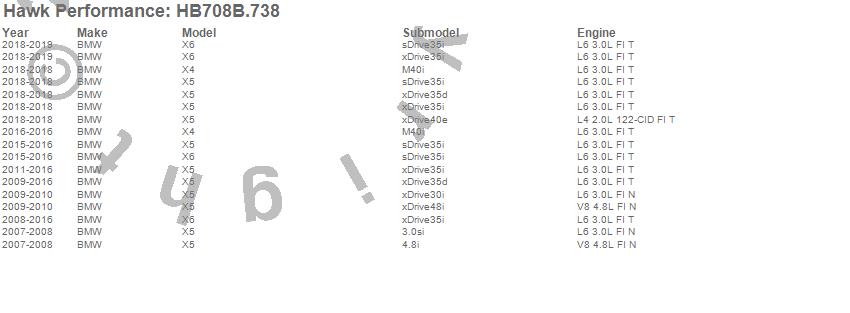 Below is an abreviated list of applications for the HPS 5.0 Disc Brake Pad.