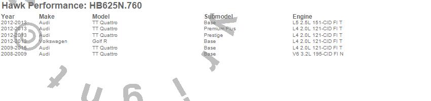 Below is an abreviated list of applications for the HP Plus Disc Brake Pad.
