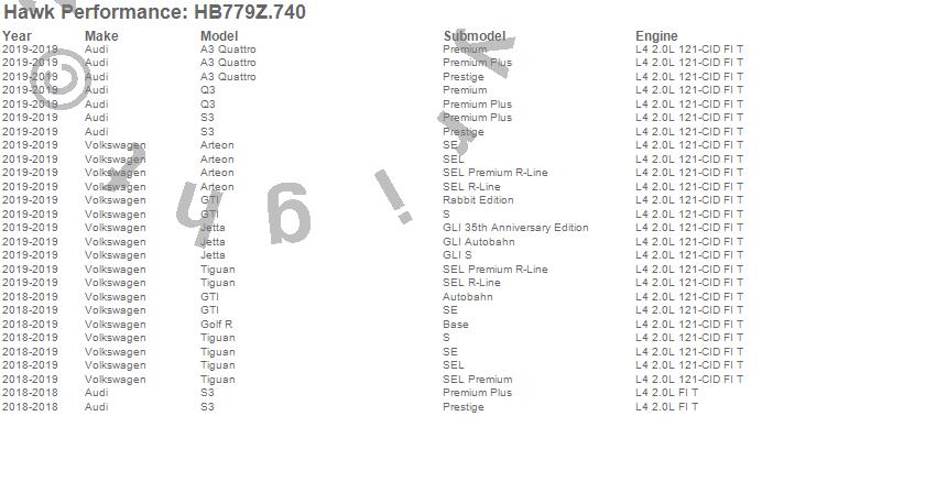 Below is an abreviated list of applications for the Performance Ceramic Disc Brake Pad.A3 Quattro, Arteon, Golf R, GTI, Jetta, Q3, S3, Tiguan, Audi, Volkswagen, 2019, 2018 moreā¦