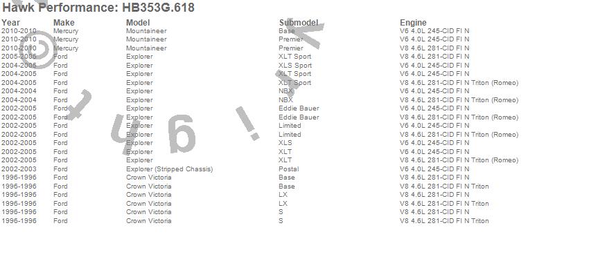 Below is an abreviated list of applications for the DTC-60 Disc Brake Pad.