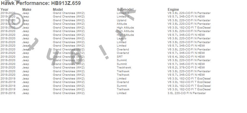 Below is an abreviated list of applications for the Performance Ceramic Disc Brake Pad.Grand Cherokee (WK2), Jeep, 2020, 2019, 2018 moreā¦