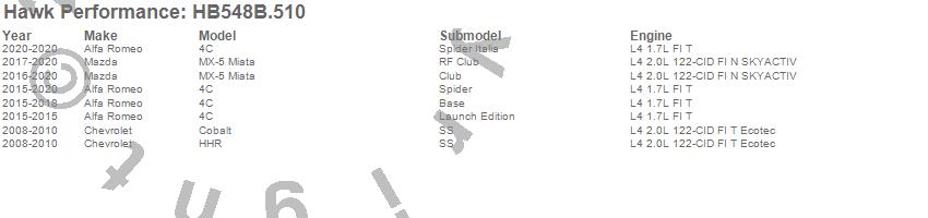 Below is an abreviated list of applications for the HPS 5.0 Disc Brake Pad.