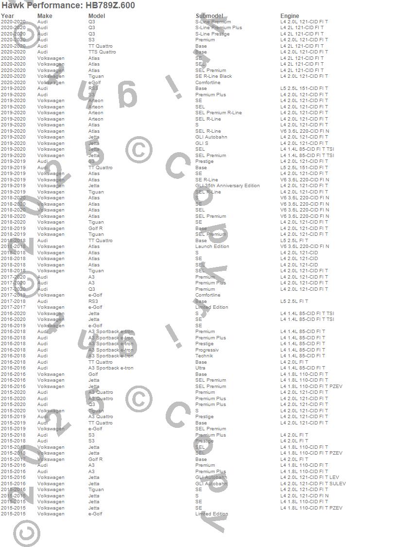 Below is an abreviated list of applications for the Performance Ceramic Disc Brake Pad.