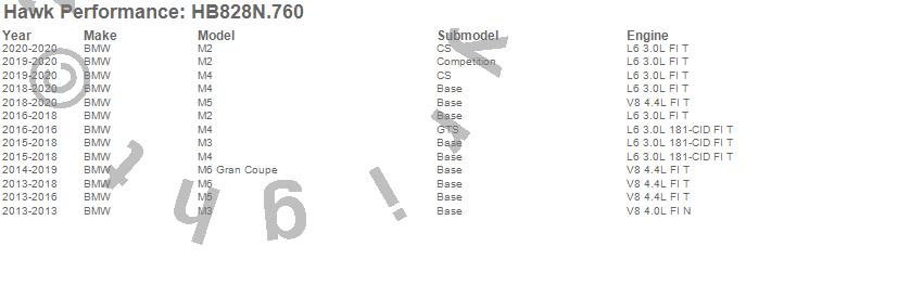 Below is an abreviated list of applications for the HP Plus Disc Brake Pad.