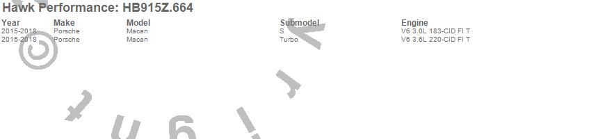 Below is an abreviated list of applications for the Performance Ceramic Disc Brake Pad.Macan, Porsche, 2018, 2017, 2016, 2015 moreā¦