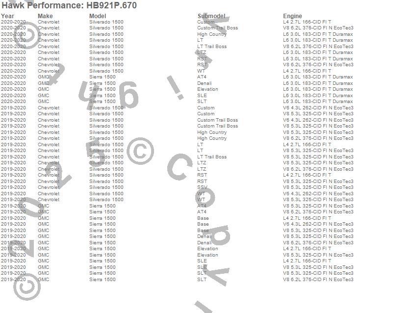 Below is an abreviated list of applications for the SuperDuty Disc Brake Pad.Sierra 1500, Silverado 1500, Chevrolet, GMC, 2020, 2019 moreā¦