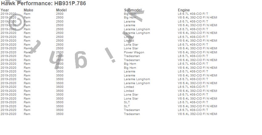 Hawk Performance #HB931P.786 SuperDuty Disc Brake Pad Features: