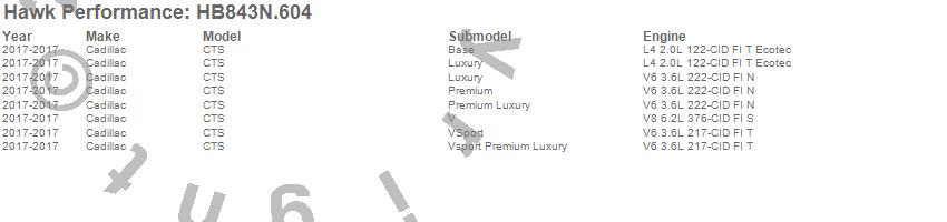 Below is an abreviated list of applications for the HP Plus Disc Brake Pad.