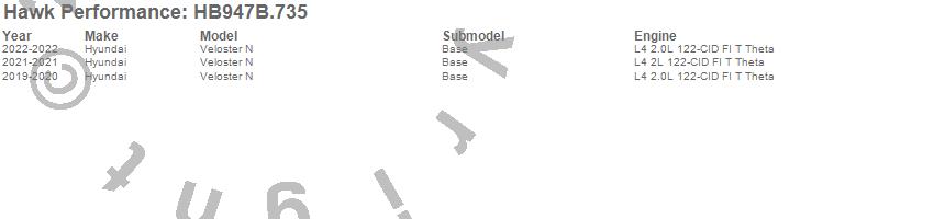 Below is an abreviated list of applications for the HPS 5.0 Disc Brake Pad.