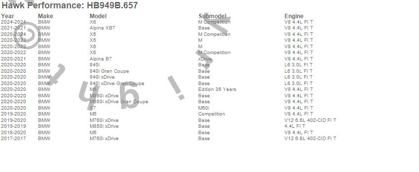 Below is an abreviated list of applications for the HPS 5.0 Disc Brake Pad.