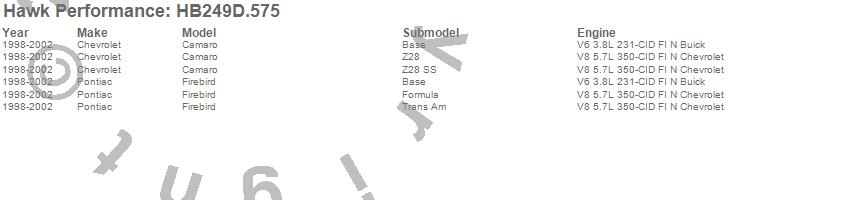 Below is an abreviated list of applications for the ER-1 Disc Brake Pad.Camaro, Firebird, Chevrolet, Pontiac, 2002, 2001, 2000, 1999, 1998 moreā¦