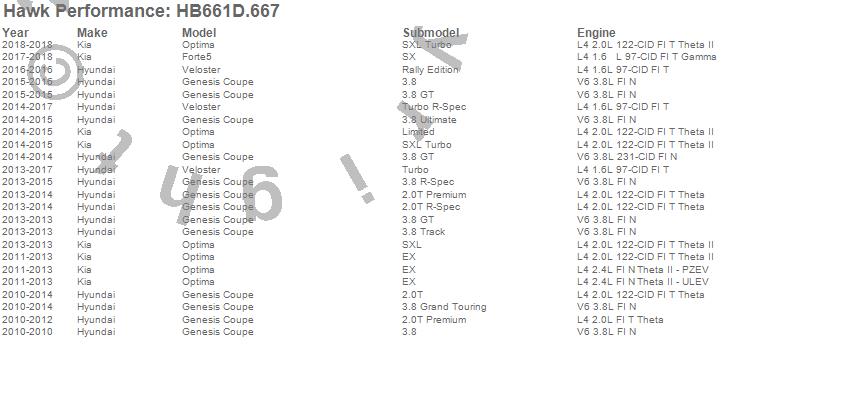 Below is an abreviated list of applications for the ER-1 Disc Brake Pad.Forte5, Genesis Coupe, Optima, Veloster, Hyundai, Kia, 2018, 2017, 2016, 2015, 2014, 2013, 2012, 2011, 2010 moreā¦