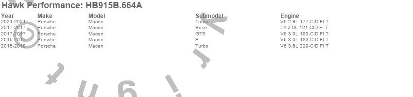 Hawk Performance #HB915B.664A HPS 5.0 Disc Brake Pad Features: