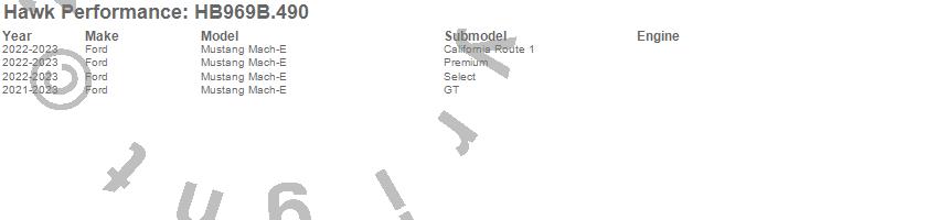 Below is an abreviated list of applications for the HPS 5.0 Disc Brake Pad.