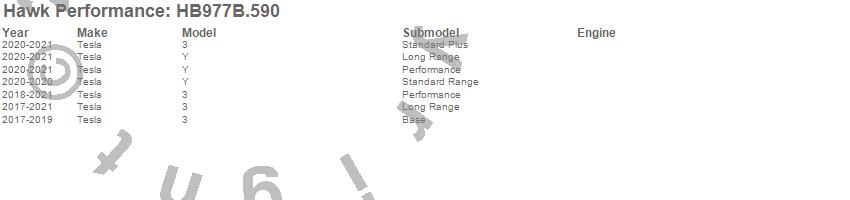 Below is an abreviated list of applications for the HPS 5.0 Disc Brake Pad.