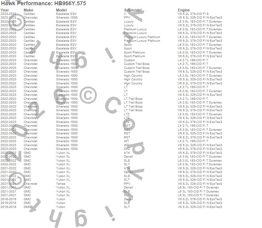 Below is an abreviated list of applications for the LTS Disc Brake Pad.Escalade ESV, Silverado 1500, Tahoe, Yukon, Yukon XL, Cadillac, Chevrolet, GMC, 2023, 2022, 2021, 2018, 2017, 2016 moreā¦