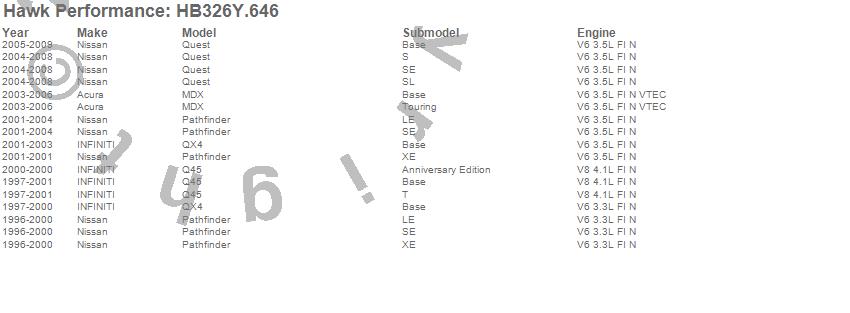 Below is an abreviated list of applications for the LTS Disc Brake Pad.MDX, Pathfinder, Q45, Quest, QX4, Acura, INFINITI, Nissan, 2009, 2008, 2007, 2006, 2005, 2004, 2003, 2002, 2001, 2000, 1999, 1998 moreā¦