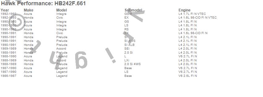 Below is an abreviated list of applications for the HPS Disc Brake Pad.