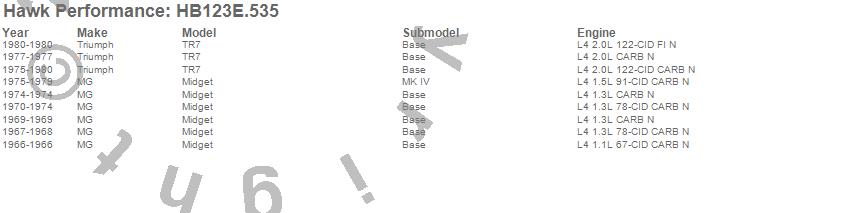 Below is an abreviated list of applications for the Blue 9012 Disc Brake Pad.