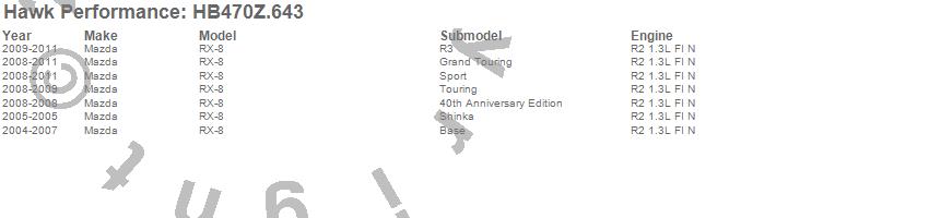 Below is an abreviated list of applications for the Performance Ceramic Disc Brake Pad.RX-8, Mazda, 2011, 2010, 2009, 2008, 2007, 2006, 2005, 2004 moreā¦