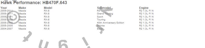 Below is an abreviated list of applications for the HPS Disc Brake Pad.