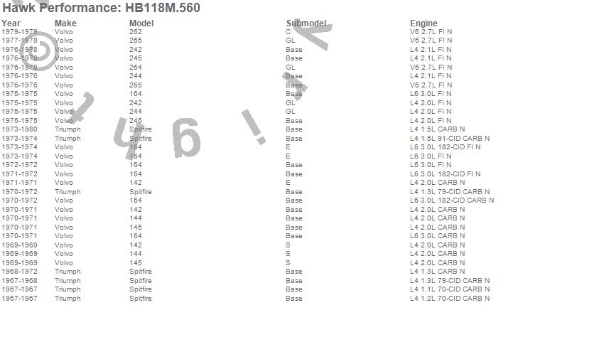 Below is an abreviated list of applications for the Black Disc Brake Pad.142, 144, 145, 164, 242, 244, 245, 262, 264, 265, Spitfire, Triumph, Volvo, 1980, 1979, 1978, 1977, 1976, 1975, 1974 moreā¦