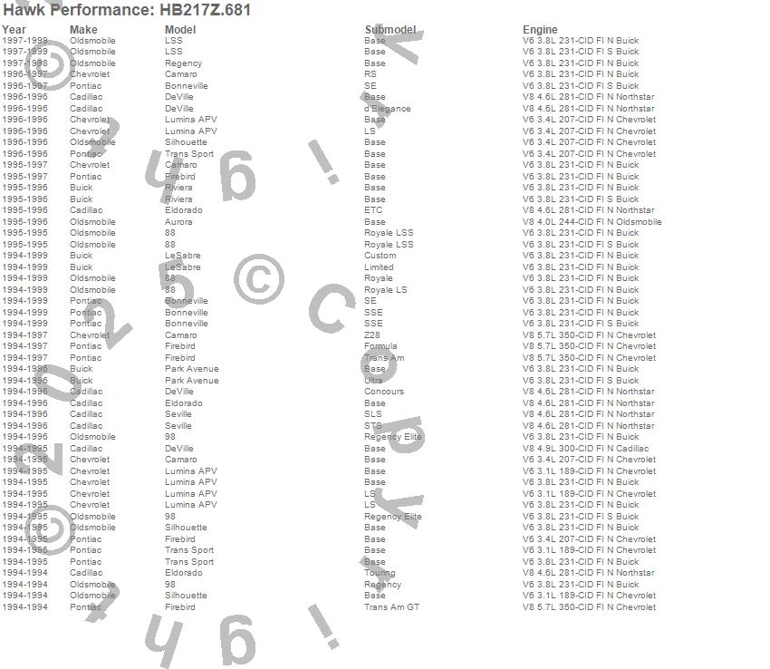 Hawk Performance HB217Z.681 Performance Ceramic Disc Brake Pad