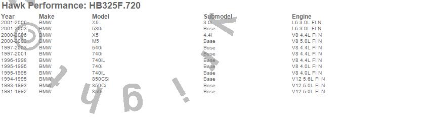 Below is an abreviated list of applications for the HPS Disc Brake Pad.530i, 540i, 740i, 740iL, 850Ci, 850CSi, 850i, M5, X5, BMW, 2006, 2005, 2004, 2003, 2002, 2001, 2000, 1999, 1998, 1997 moreā¦