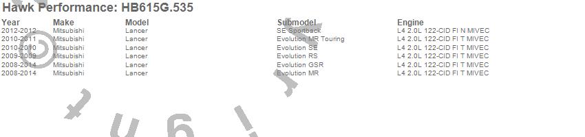 Below is an abreviated list of applications for the DTC-60 Disc Brake Pad.