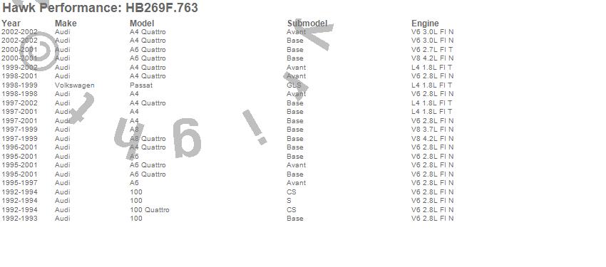 Below is an abreviated list of applications for the HPS Disc Brake Pad.100, 100 Quattro, A4, A4 Quattro, A6, A6 Quattro, A8, A8 Quattro, Passat, Audi, Volkswagen, 2002, 2001, 2000, 1999, 1998, 1997, 1996, 1995, 1994 moreā¦