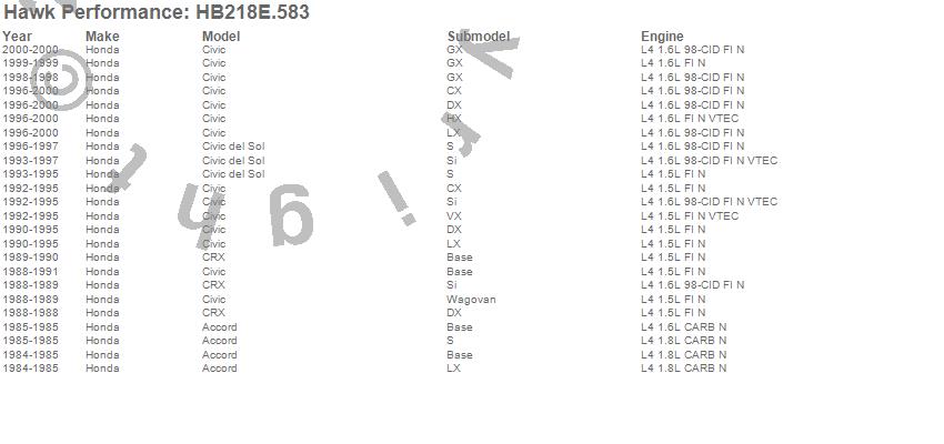 Below is an abreviated list of applications for the Blue 9012 Disc Brake Pad.