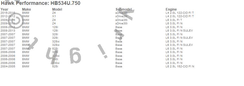 Below is an abreviated list of applications for the DTC-70 Disc Brake Pad.