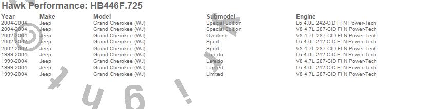 Below is an abreviated list of applications for the HPS Disc Brake Pad.