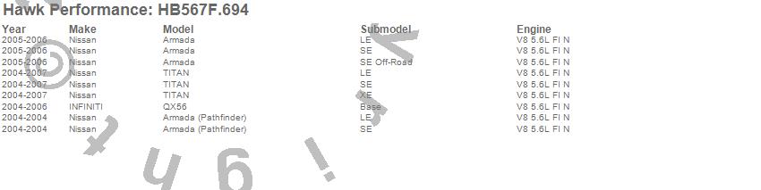 Below is an abreviated list of applications for the HPS Disc Brake Pad.