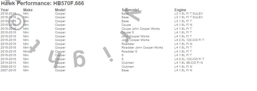 Below is an abreviated list of applications for the HPS Disc Brake Pad.