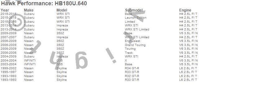 Below is an abreviated list of applications for the DTC-70 Disc Brake Pad.350Z, G35, Impreza, Skyline, WRX STI, INFINITI, Nissan, Subaru, 2015, 2014, 2013, 2009, 2008, 2007, 2006, 2005, 2004, 2003, 2002, 2001 moreā¦