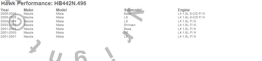 Below is an abreviated list of applications for the HP Plus Disc Brake Pad.