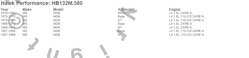 Below is an abreviated list of applications for the Black Disc Brake Pad.MGB, MG, 1980, 1979, 1978, 1977, 1976, 1975, 1974, 1973, 1972, 1971, 1970, 1969, 1968, 1967 moreā¦