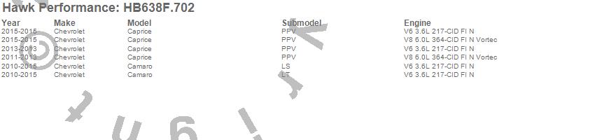 Below is an abreviated list of applications for the HPS Disc Brake Pad.
