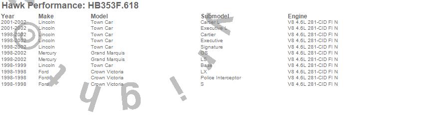 Below is an abreviated list of applications for the HPS Disc Brake Pad.