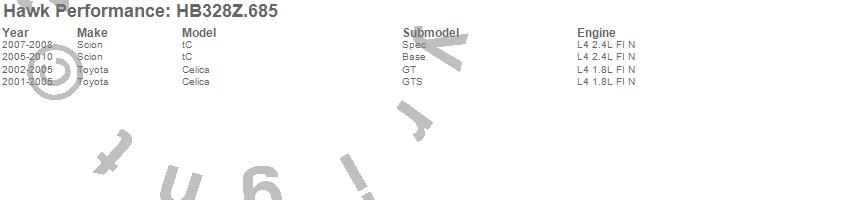 Below is an abreviated list of applications for the Performance Ceramic Disc Brake Pad.Celica, tC, Scion, Toyota, 2010, 2009, 2008, 2007, 2006, 2005, 2004, 2003, 2002, 2001 moreā¦