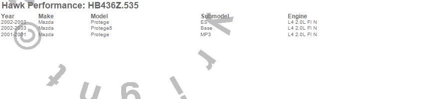 Below is an abreviated list of applications for the Performance Ceramic Disc Brake Pad.Protege, Protege5, Mazda, 2003, 2002, 2001 moreā¦