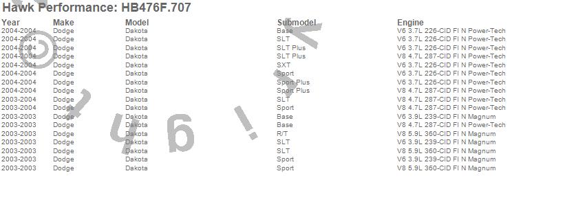 Hawk Performance #HB476F.707 HPS Disc Brake Pad Features: