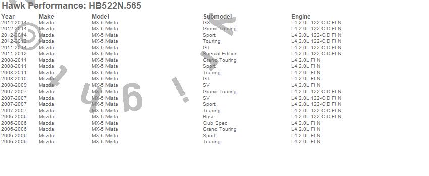 Below is an abreviated list of applications for the HP Plus Disc Brake Pad.