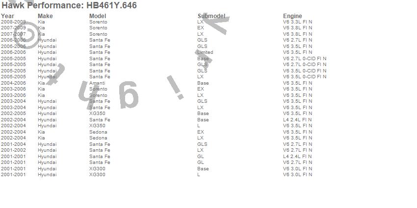 Below is an abreviated list of applications for the LTS Disc Brake Pad.Amanti, Santa Fe, Sedona, Sorento, XG300, XG350, Hyundai, Kia, 2009, 2008, 2007, 2006, 2005, 2004, 2003, 2002, 2001 moreā¦
