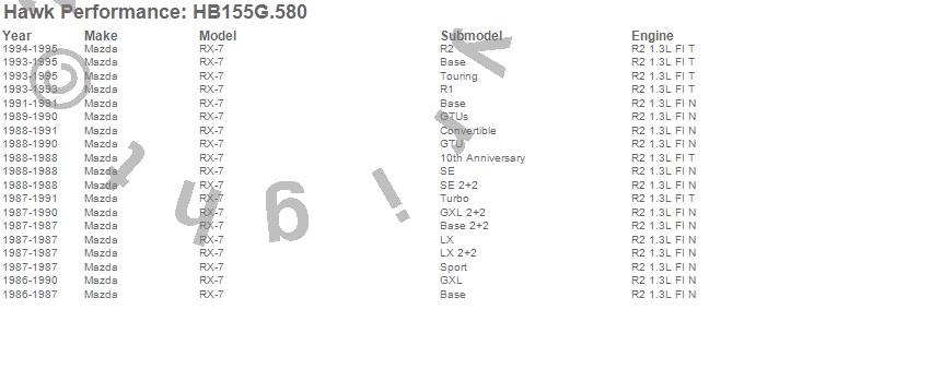 Below is an abreviated list of applications for the DTC-60 Disc Brake Pad.
