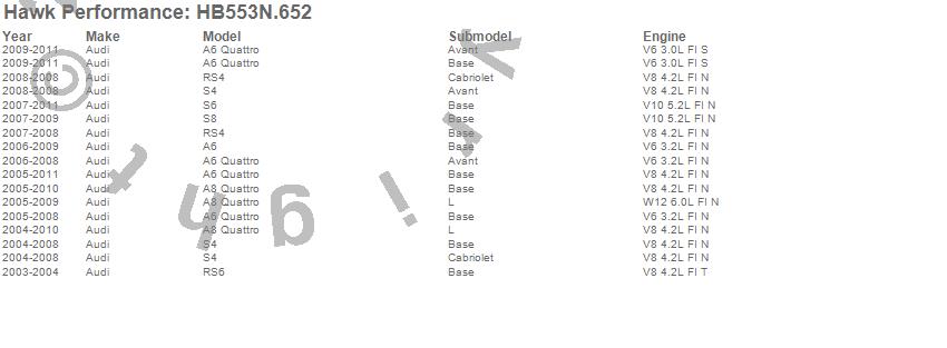 Below is an abreviated list of applications for the HP Plus Disc Brake Pad.