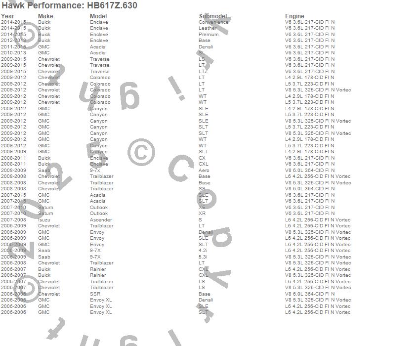 Below is an abreviated list of applications for the Performance Ceramic Disc Brake Pad.