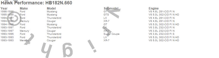 Below is an abreviated list of applications for the HP Plus Disc Brake Pad.