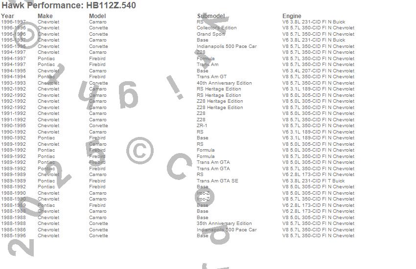 Below is an abreviated list of applications for the Performance Ceramic Disc Brake Pad.